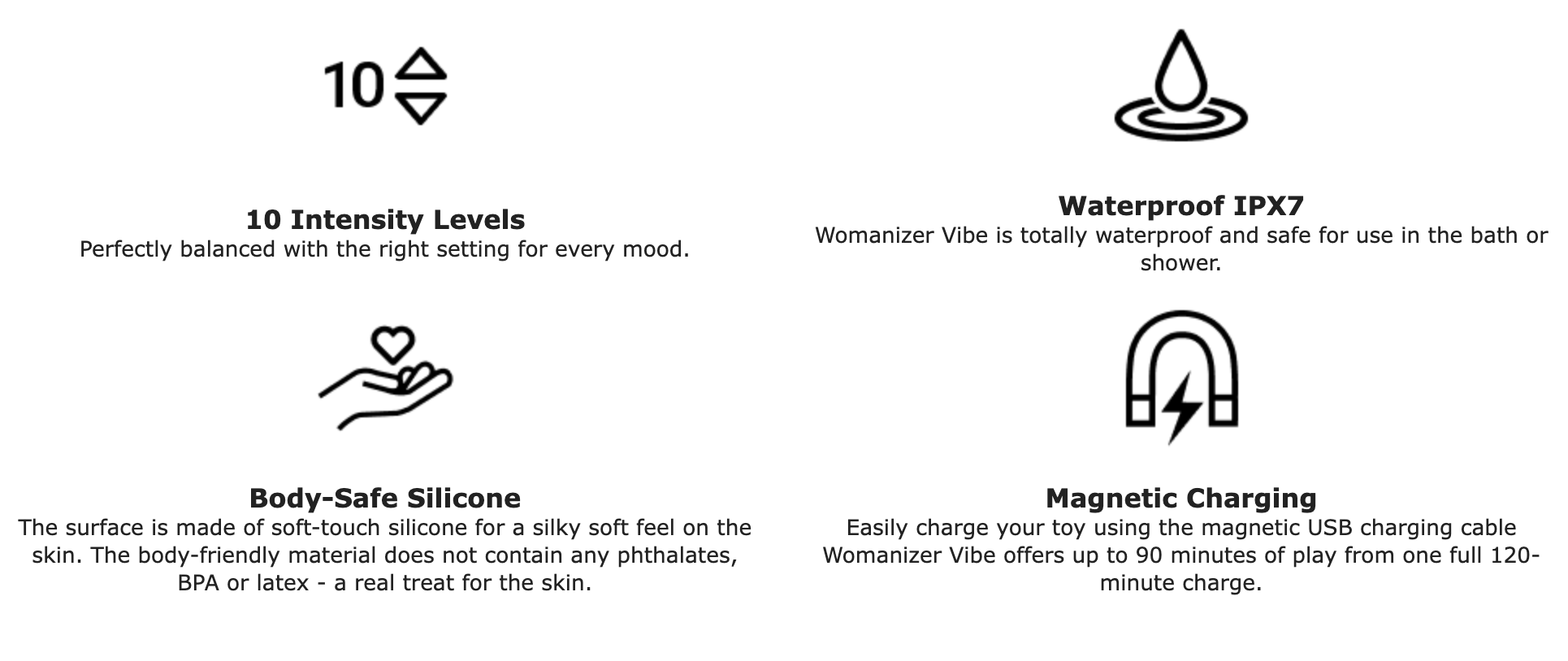 Womanizer Vibe is totally waterproof and safe for use in the bath or shower.