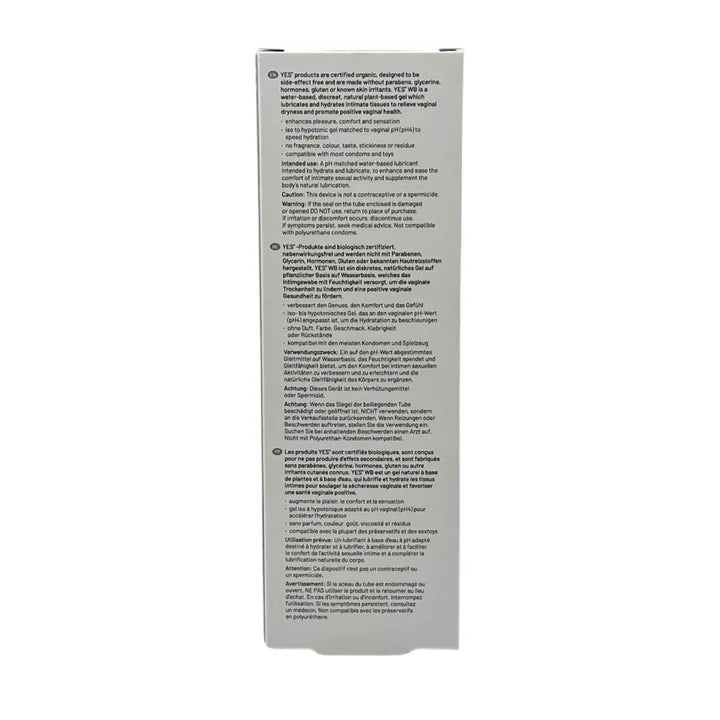 Indulge in silky, sensuous hydration with YES WB, a water-based organic lubricant designed to enhance intimacy while caring for your body. Odorless, tasteless, and non-sticky, it feels just like your own natural lubrication — perfect for intimate moments with yourself or a partner.